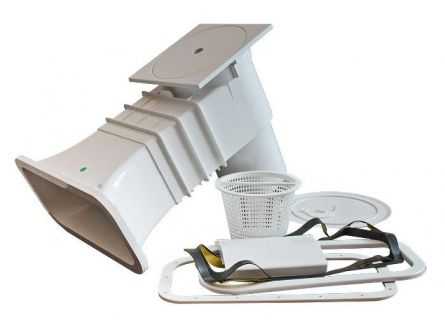 - скиммерный — оборудован устройством (или несколькими) с плавающей заслонкой, находящимся в стене бассейна на уровне зеркала воды. Данное устройство предназначено для отвода верхнего загрязненного слоя воды к фильтровальной установке.