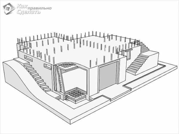 - Затем устанавливается опалубка и выполняется армирование.