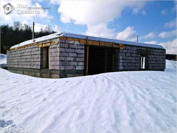 Прежде чем приступать к строительству стен, необходимо дождаться, пока застынет пол, в противном случае блоки могут продавить напольную плиту.