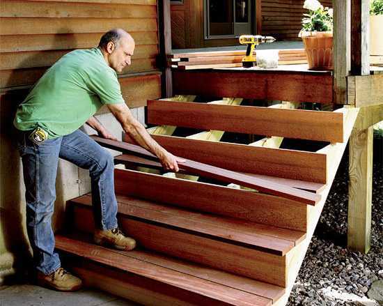 Сборка деревянной уличной лестницы