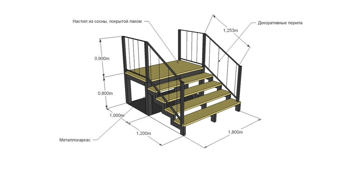 ; - Ширина ступеней крыльца (ширина проступи) – от 250 до 300 мм.;