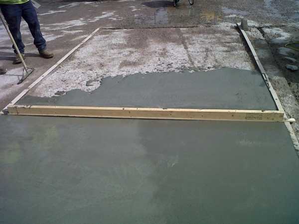 - Происходит разравнивание. Для этого используется правило. Не лишним будет взять уровень и проверить уровень раствора на основании. Если бетона будет не хватать, то его следует добавить в нужном количестве. Не надо бояться выложить больше раствора, чем полагается. Все излишки без проблем убираются и стягиваются к входу.