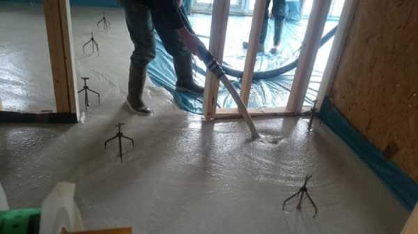 Рассмотрим процесс самостоятельной заливки пола мокрым способом. Фото стяжки пола позволят вам лучше понять технологию.