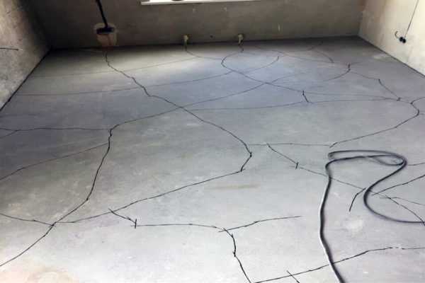 - Толщина слоя должна быть не менее 2 см. В противном случае стяжка будет непрочной и с высокой долей вероятности покроется в скором времени трещинами. В случае монтажа теплого пола, слой делается минимум 5 см от нагревательных элементов. Это также важно, так как при перепадах температуры покрытие будет испытывать большие деформации, что может привести к повреждениям.