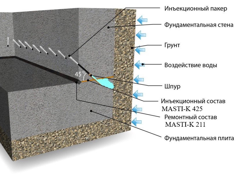 Ранее говорили про грунтовые воды, которые ппроникают через толщу бетона и их тоже нужно сдерживать.