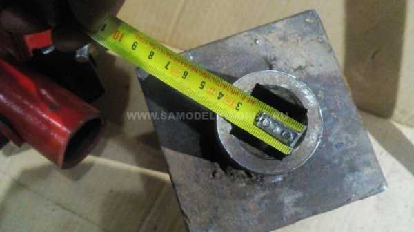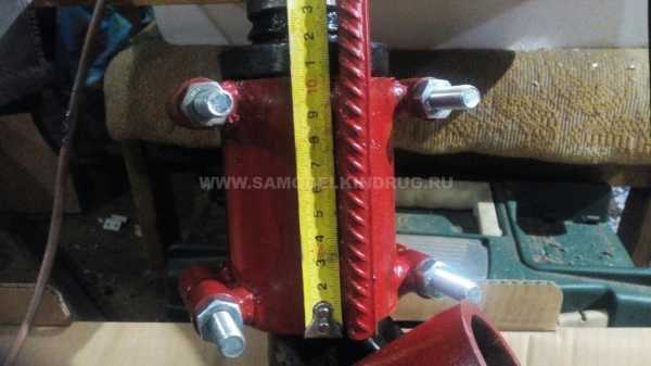 Для того чтобы труба не сминалась в месте сочленения с крепежным болтом, ее можно усилить небольшим отрезком швеллера, полосы или уголка.