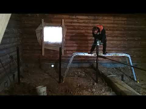 HotmotorПользователь FORUMHOUSEВ технологические отверстия вставили полуось от грузовика Мерседес, на нее одели две двухметровые трубы и «на РАЗ» пыжились. После каждого оборота проверяли уровни. Один оборот — 10 см вниз.