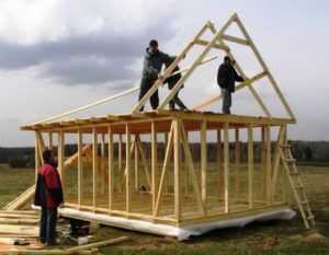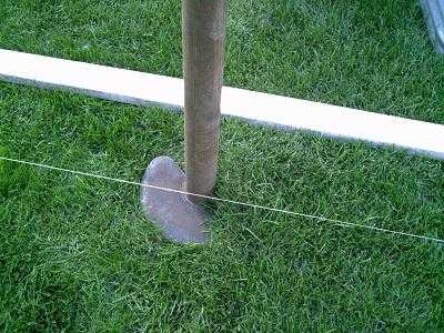 Места установки намечают деревянными брусьями с заостренным нижним концом (для более легкого заглубления в грунт), между кольями протягивают бечевку по всему периметру постройки и диагоналям.