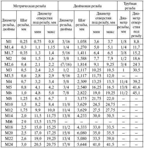 Диаметр сверла под резьбу: таблица, условия подбора сверл