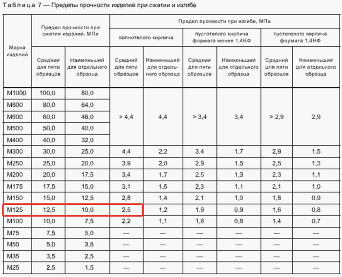 Максимально допустимый порог прочности состава для каждой марки индивидуален.