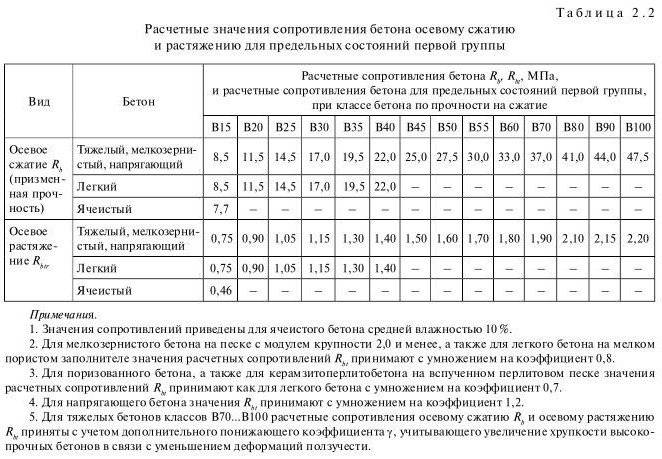 Класс бетона по прочности на осевое растяжение обозначается «Bt» и соответствует значению прочности бетона на осевое растяжение в МПа с обеспеченностью 0,95 и принимается в пределах от Bt 0,4 до Bt 6.