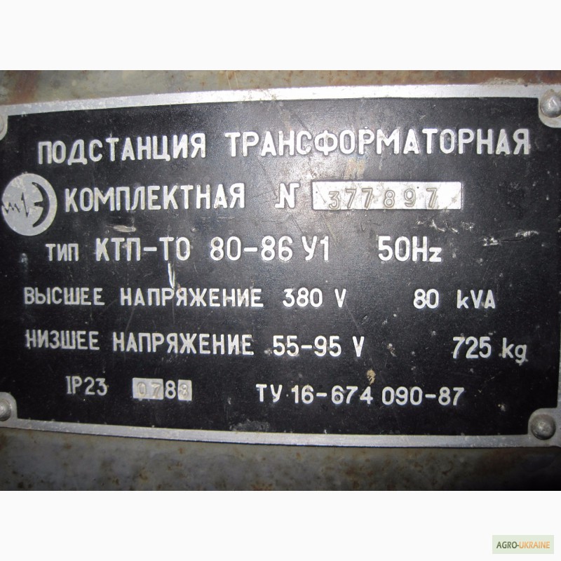| Номинальная мощность силового трансформатора | 80 кВА |