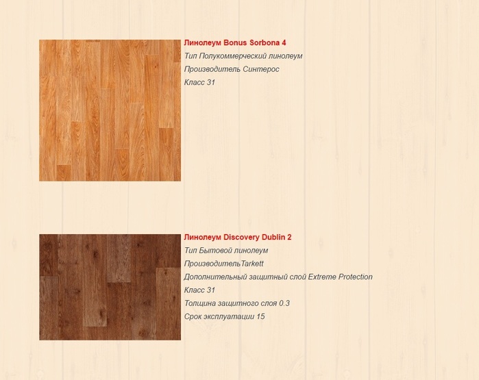 Конкретные марки линолеума
