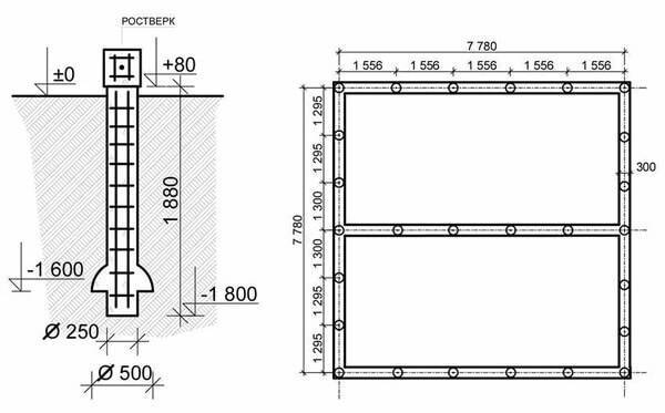 - Сделайте копию плана фундамента вашего проекта. Разделите полную нагрузку от здания на несущую способность одной сваи, и вы получите количество свай, которые вам необходимо сделать.