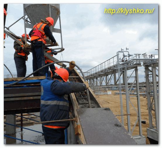 Укладка и работы, связанные с этим, являются очень трудоемкими и энергоемкими. На больших производствах все работы проводятся при помощи специальных машин, таких как бетоноукладчики или бетонораздатчики. Но при этом, конечно, нужны и рабочие, которые должны следить за процессом.