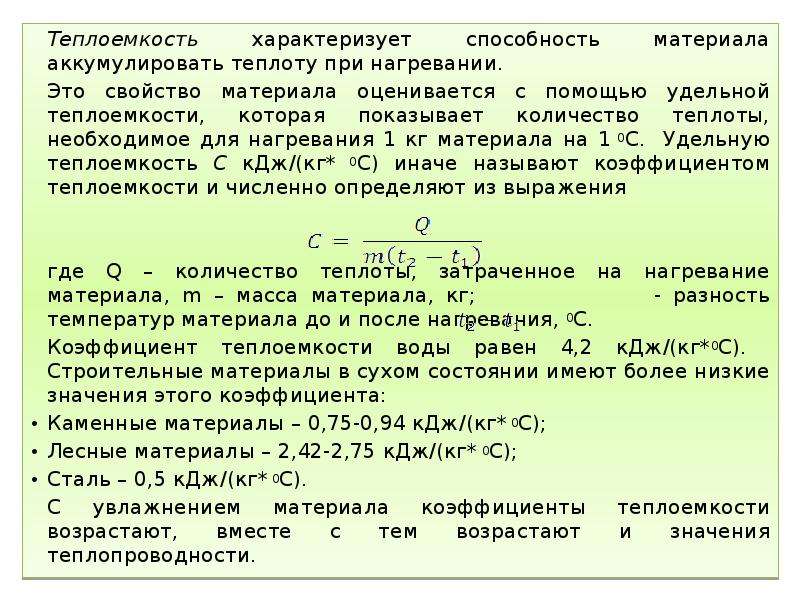 Объемная масса, массовая плотность, удельная теплоемкость, теплопроводность, температуропроводность горных пород — натурального камня.