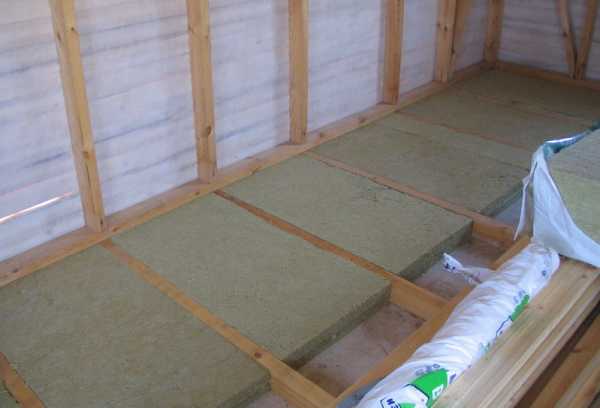 Укладывать утеплитель на лаги намного проще, так как нагрузка на материал при укладке этим способом гораздо ниже. При монтаже утеплителя на бетонную основу необходимо использовать только плотные и твердые материалы, которые будут выдерживать большие нагрузки.