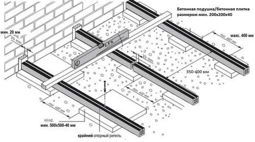 При обустройстве опорных лаг, максимальное расстояние между направляющими не должно быть более 60 см