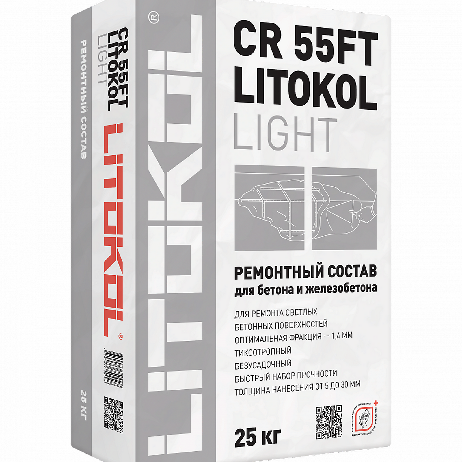 Материал предназначен для ремонта бетона и восстановления поверхности и железобетонных конструкций с дефектами размером от 3 мм до 20 мм.