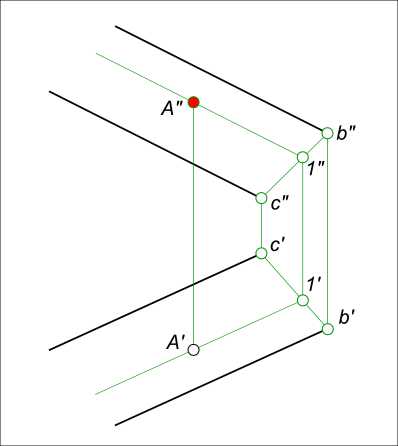 Здесь, как и в случае центрального проецирования, одной точке пространства соответствуют две ее проекции. Аналогичным образом мы можем получить две проекции точек В,С или любой другой точки пространства.