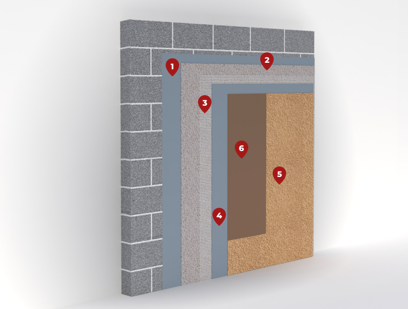 Непосредственно перед нанесением финишного покрытия необходимо увлажнить базовое покрытие. Эта влага, поглощаемая базовым слоем, и относительная влажность окружающей среды обеспечивают полное отверждение штукатурки финишного покрытия (особенно цветных финишных слоев), так что нет необходимости в дальнейшем отверждении финишного слоя во влажном состоянии.
