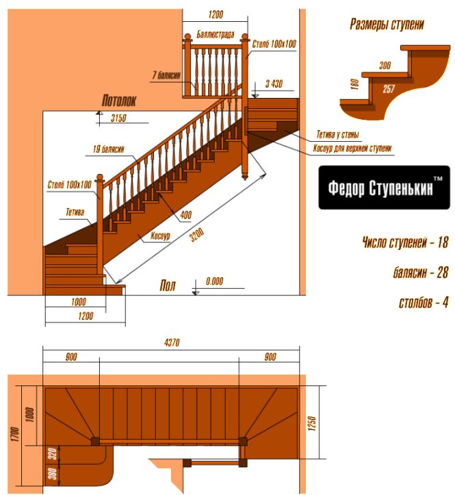 Опытные строители при расчетах советуют учитывать еще один небольшой секрет: наиболее органично выглядят те лестничные конструкции, у которых ширина марша кратна ширине поступи.