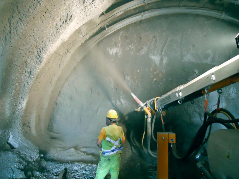 Набрызг-бетон - успешно используется для стабилизации скальных откосов, подземных выработок и временной защиты только что выкопанных скальных поверхностей.