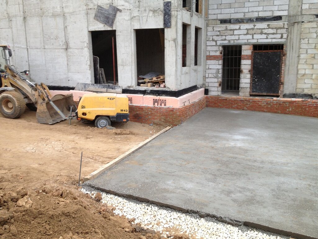 После предварительной подготовки и очистки грунта идет укладка тощего бетона слоем примерно 10 см. Подготовительные работы заключаются в снятии около 20 см грунта, уплотнении и выравнивании поверхности, путем засыпания камня и песка. Толщина такой подушки должна быть не менее полуметра.