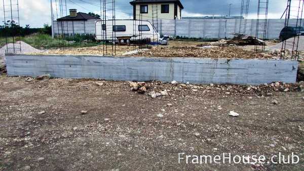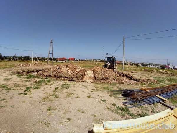 Рассчитав размеры на строительную площадку можно наносить разметку.После чего потребуется удалить плодородный слой земли (20-30 см). Траншея копается от самого высокого угла, заглубляясь в грунт по всему периметру. Глубина котлована контролируется с помощью вех, которые погружаются в угловые сопряжения траншей, образующих профиль фундамента.