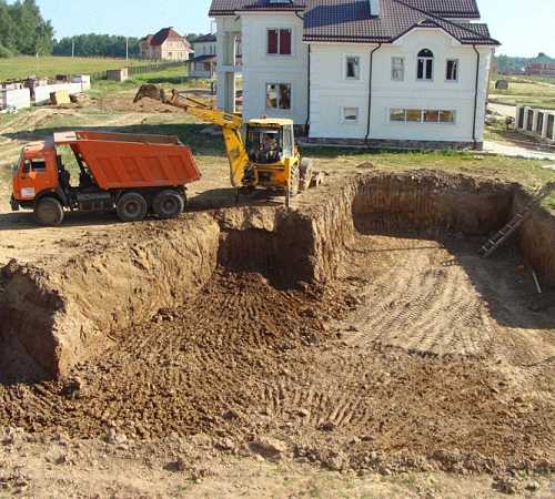Очевидно, что использование техники для выкапывания котлована целесообразно в том случае, когда нужно выполнить большой объем работ. Механический метод выгодно использовать, и когда планируется строительство дома с подвалом, т.к. в этом случае надо разрабатывать котлован под всей площадью дома.