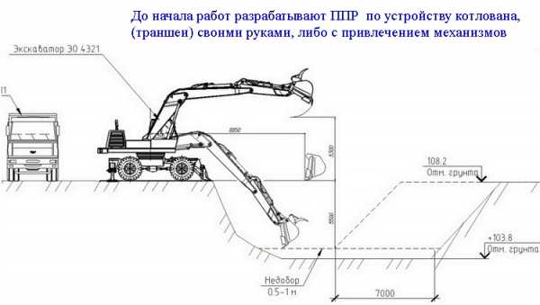 Разработка ямы под фундамент ленточного типа. Расчет размеров котлована