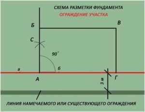 Уже на этой схеме отмечены все прямые углы, расстояние до ограждений участка, длина и ширина котлована. Строителям предстоит перенести полученную схему на территорию участка, соблюдая все намеченные размеры.