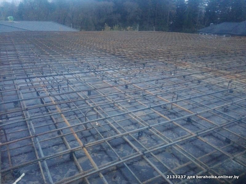 - Устанавливаем в опалубку усиливающую арматуру для наращиваемого слоя бетона. Перед самой укладкой необходимо смочить поверхность плиты водой. Всю наращиваемую площадь нужно бетонировать сразу.