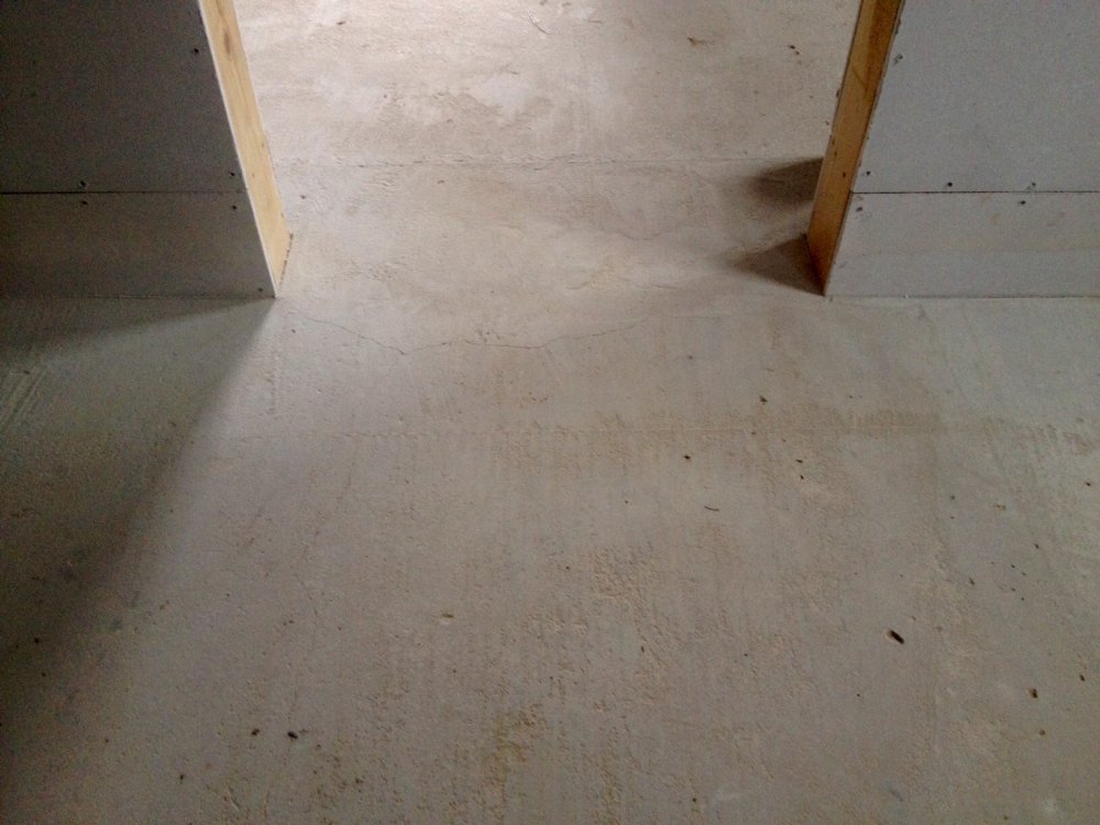 Перед тем, как замазывать трещину, необходимо убедиться, что пол сухой.