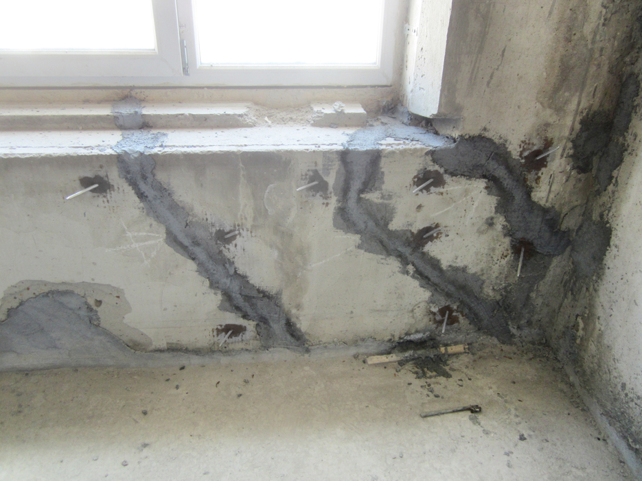 Приготовленный раствор закладывается в подготовленную трещину и размазывается по всей ее глубине.
