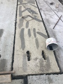 - Чтобы трещины в дальнейшем не появились в перекрытии, делаем на бетонной поверхности насечки, это усилит сцепление с наращиваемым слоем. Параллельно старым прутьям арматуры наращиваем слой бетона, после чего устанавливаем подвесную опалубку.