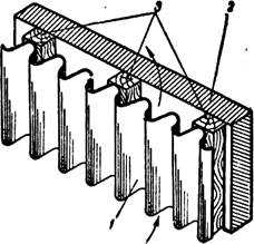 Рис. 14. Солнцезащитный экран из асбестоцементных или дюралюминиевых листов: