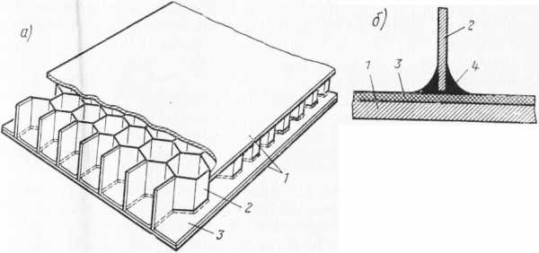 Для соединений обшивок со сплошным или ребристым средним слоем — клеевое; >