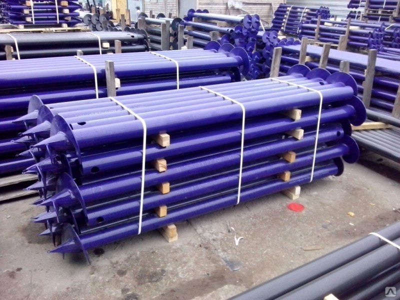 Винтовая свая также представляет собой трубу сприваренными к ней лопастями и коническим «носом». Эти дополнения предназначены для упрощения процесса вкручивания конструкции в землю. Винтоваямодификация отлично подойдёт для бани, забора, небольшого деревянного жилого домика.
