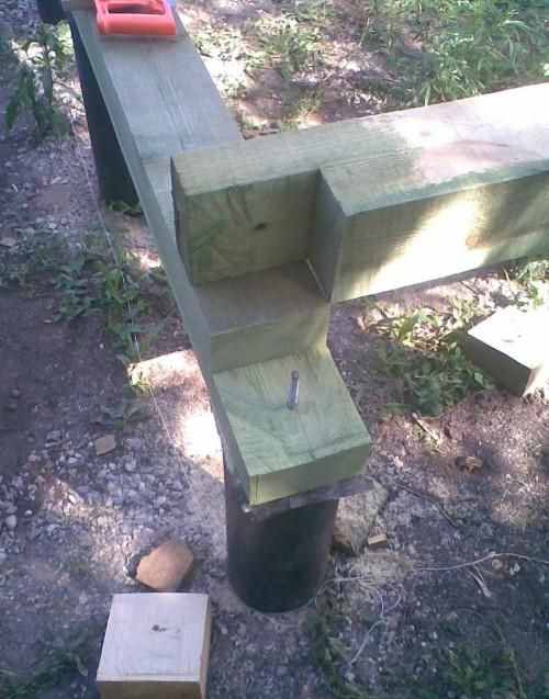 Стойка из арматуры установлена в трубу. Режем шпильку М10 на отрезки длиной 50 см. Фото с канала Кирилла Бонда