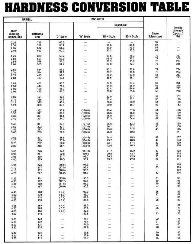 к размеру зерна материала. Таблицы преобразования твердости иногда показывают предел прочности при растяжении.