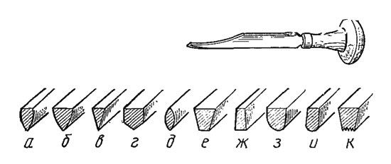 Форма режущей части (лезвия) любого режущего инструмента представляет собой клин с определенными углами (зубило, резец) или несколько клиньев (ножовочное полотно, метчик, плашка, фреза, напильник).