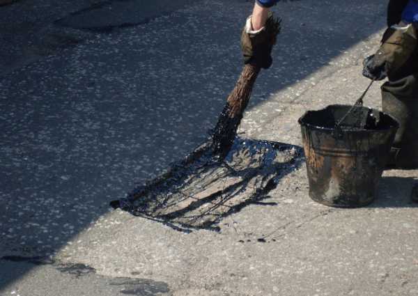 - Битум – сначала очищают дефект от мусора и пыли, заполняют битумом пустоты, через 2-3 минуты тщательно выравнивают и трамбуют