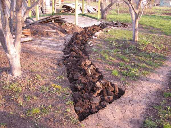 После разметки территории начинают копать траншею под покрытие. Обычно тротуары и покрытия улиц выполняют на одном уровне, поэтому почву нужно убирать на всю ширину покрытия, даже если отдельные его части будут разных типов.