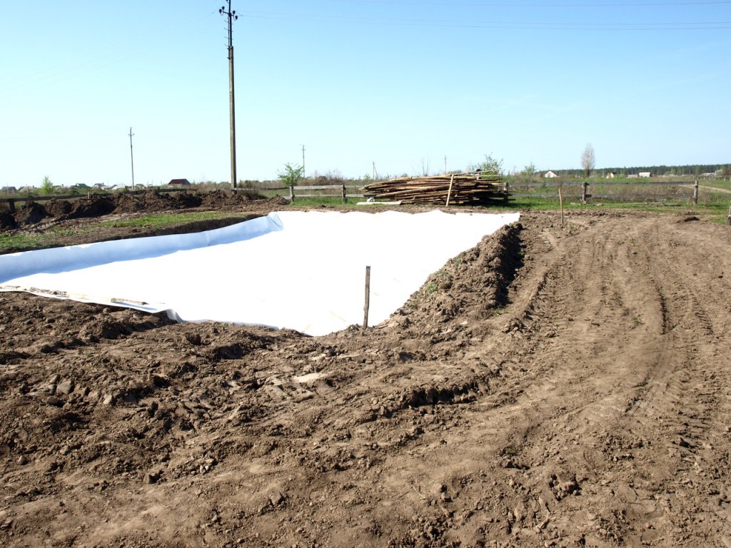 Котлован с уложенным геотекстилем.