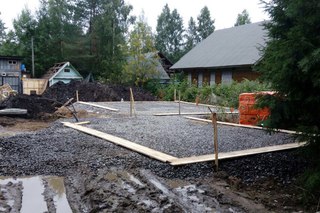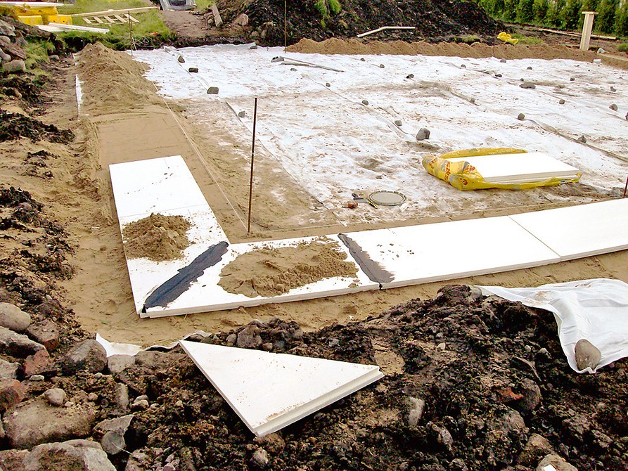 Для того, чтобы увеличить несущую способность почвы и избежать последствий вспучивания при малом заглублении конструкции, верхний слой грунта снимается на глубину до 1,0 метра и заменяется насыпными нерудными материалами в виде щебня и песка.