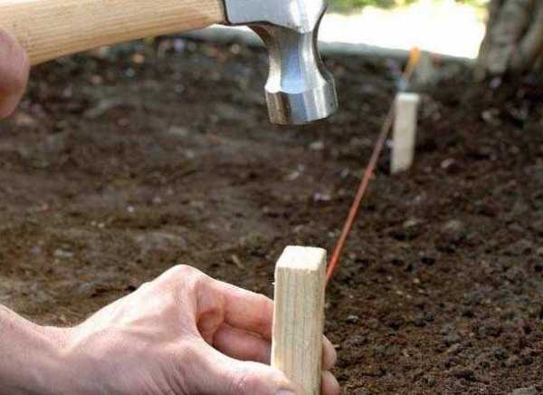 Участок для дорожки своими руками нужно разметить с помощью колышков и шнура.