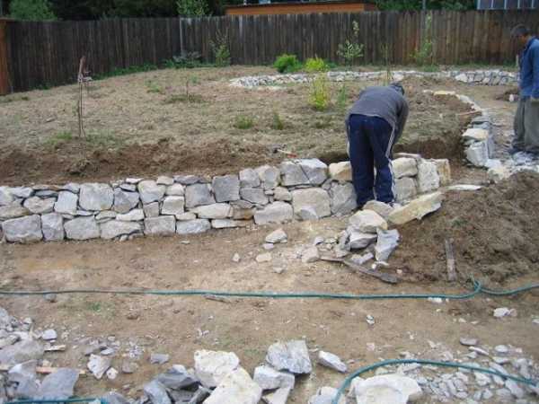 Промытый и отсортированный камень необходимо уложить по принципу пирамиды – снизу самые крупные, с высотой кладки размер элементов уменьшается.