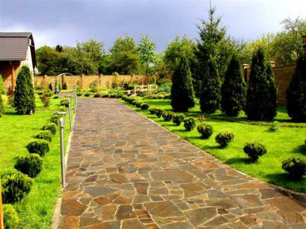 К его преимуществам можно добавить абсолютную сочетаемость с другими материалами. Дорожка из камня гармонично будет смотреться в любом ландшафте. Да и отделку цоколя можно производить на домах, построенных из различных материалов.