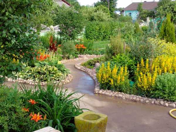 Ширина садовой тропинки может быть от 40 см, тротуара – от 80 см в зависимости от количества людей, которые будут там ходить, главный въезд предусматривают шириной от 3 м. Уклон территории должен быть минимум 2 градуса. Тротуар можно выполнить выпуклый, тогда вода будет стекать с неё на все края, а не в одну сторону. Заранее необходимо продумать водосток или дренажную систему.